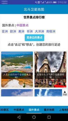 1. 平台特色:这个平台让你足不出户就能轻松探索整个世界,因为它提供了许多精选城市的3D再现。使用方法非常简单,适合各种人群使用,同时它拥有一个强大的地图系统,让你轻松找到想要关注的地理位置信息。另外,你也可以在这里看到真实的街景,更好地了解世界。
