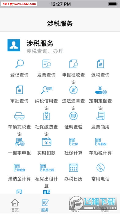 2、涉税服务:厦门市税务局纳税人基本涉税信息查询(基本登记信息、发票信息、申报征收信息等)与处理(发票领用、一键零申报及二次扣款)及一些实用工具,
