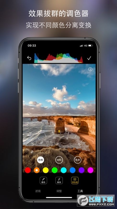 3、分离调色器:针对8种不同的图像色彩,分别进行色相,饱和度以及亮度的分离调整,图像编辑神器。