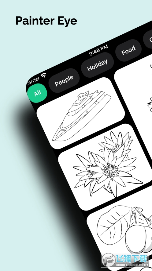 选择所需的图像。它可以从设备内存加载,也可以下载应用程序内可用的基本模板。该程序将自动将草图放置在画布上,同时让您有机会更改图像参数。使用位于屏幕底部的相应滑块可以旋转、放大图片或使其透明。PainterEye:CanvasCreator具有丰富的素描功能。您可以更改草图的颜色和绘画风格,将其转换为单色副本,或将新照片转换为模板。任何质量的图片都可以放置在画布的整个空间上,并顺序绘制复杂的元素。您甚至可以将他自己的肖像变成草图,事先从智能手机的内存中加载它。