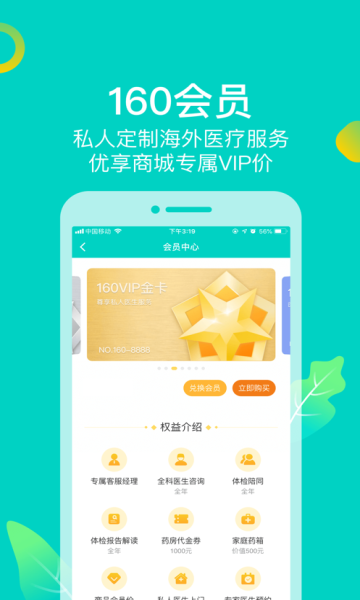 健康160(原就医160)一站式专业医疗健康服务平台!以专业,便捷为服务宗旨,致力于为用户打造“互联网+医疗健康”的就医新模式。以互联网手段连接医院、医生和患者,围绕诊前、诊中、诊后全流程健康场景,提供从体检、挂号、问诊到健康商城、健康管理等一站式医疗大健康服务,打造“以用户为中心”全生命周期的医疗健康服务平台。