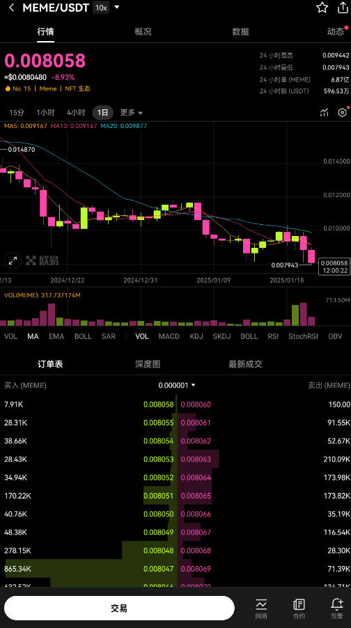 4、在trump币实时价格的详情页,点击左下方的“交易”;
