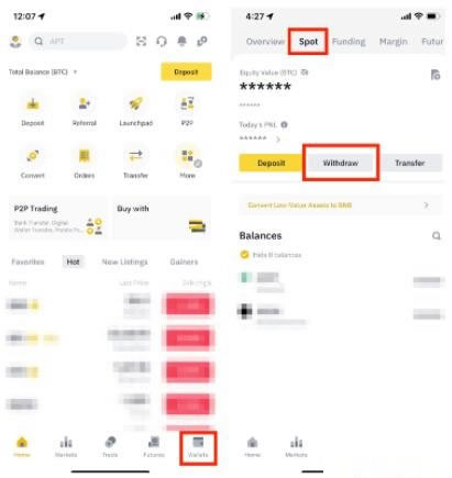 1.登入进币安帐户并点击【钱包】–【现货】–【提现】。